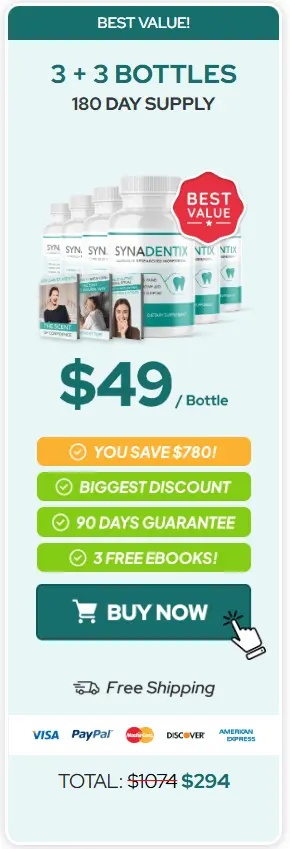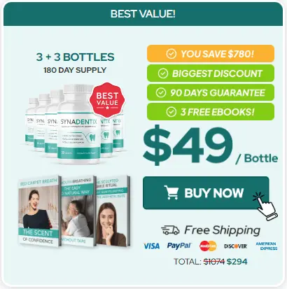 At this moment you can order Synadentix supplement for 82% OFF + FREE Shipping. This is a Limited-Time Offer and it won’t be available for long.